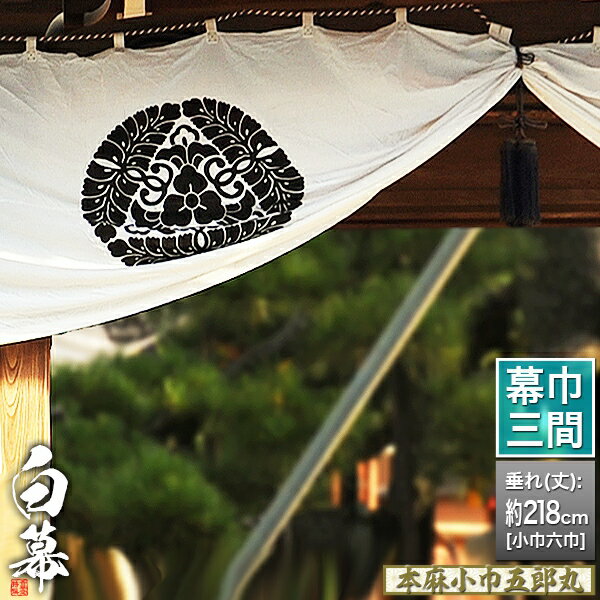 【送料無料】◆白幕(定型) [三間×小巾五巾]本麻小巾五郎丸■幕巾 約5454mm×垂(丈) 約1840mm【京染】防汚/帯電加工済