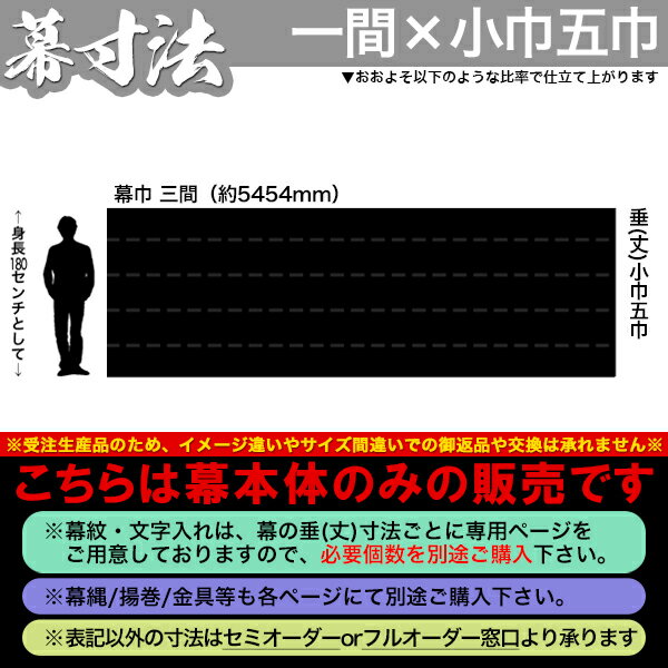 ■幕の作りについて 幕の垂(丈)が[△巾●巾]と表記してあるものは、△巾の生地巾を●枚、横方向に継いだものという意味です。